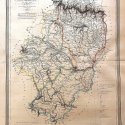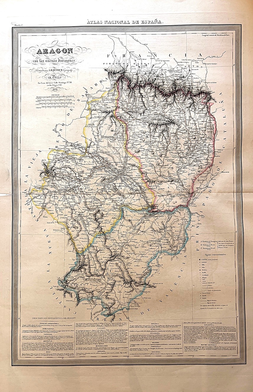 Mapa litografiado con color original.87 x 54 cms.Entelado y preservado en su estuche original con encuadernación en holandesa puntas en piel marrón,planos en papel rojizo encerado y tejuelo con letreria dorado sobre piel verde con borde dorado.Ejemplar en muy buen estado con cartela,escalas y descripción estadística en parte inferior.Ex libris de R.S Bradley en contra portada.