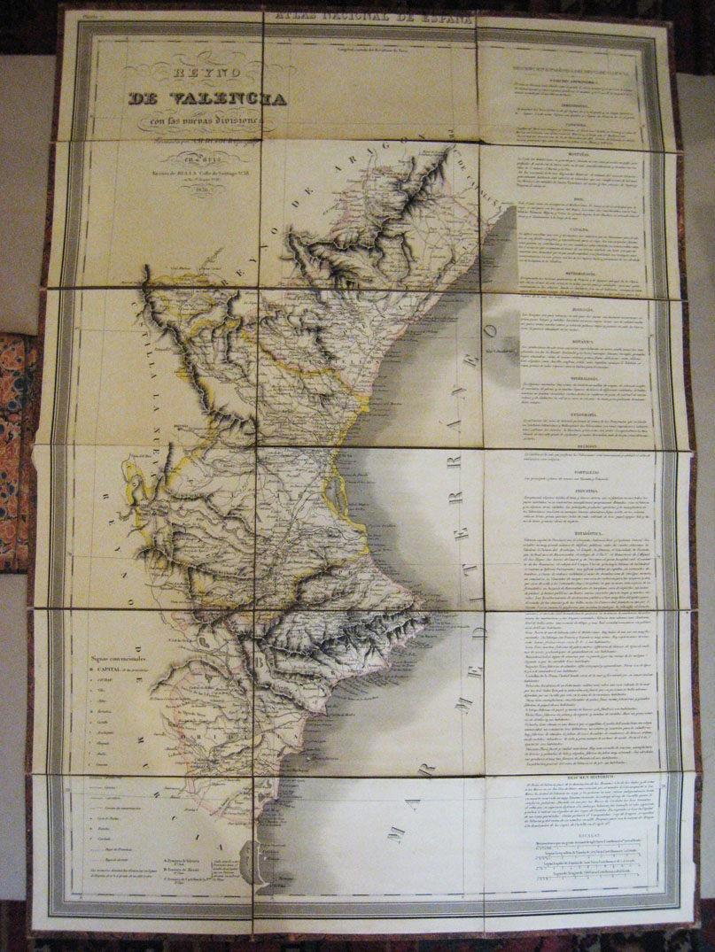Mapa grabado con color original. 57 x 83 cms.Presentado en cuarterones y entelado originalmente.Estuche original con encuadernación en holandesa puntas con lomo en piel con ruedecilla, planos en papel rojizo encerado y tejuelo con letreria dorada sobre piel verde con bordes dorados.estadisticas en parte derecha del mapa.Pieza rara presentado en este formato y con su estuche original.