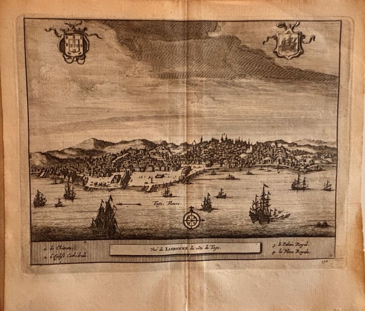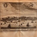 Vista general de la ciudad con escudos heráldicos y leyenda .El grabado procede de la obra de Van der Aa " Les cdelices de Espagne et Portugal, publicado en leiden y Amsterdam en 1707 hasta 1740 en diferentes ediciones. El texto de la obra es de Juan Alvarez del Colmenar.Los grabados están de alguna forma inspirados en las vistas de Braun Hogenberg y de Janssonius publicadas durante el s XVII.